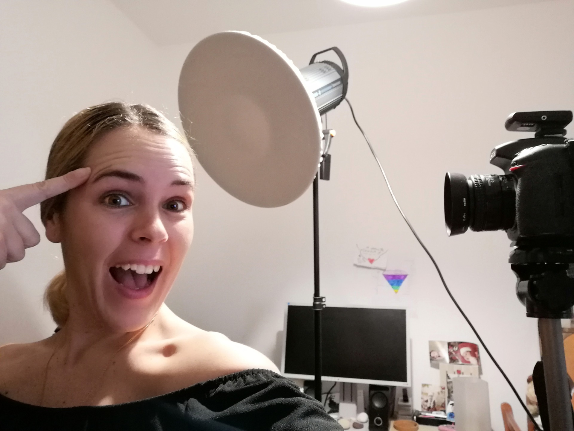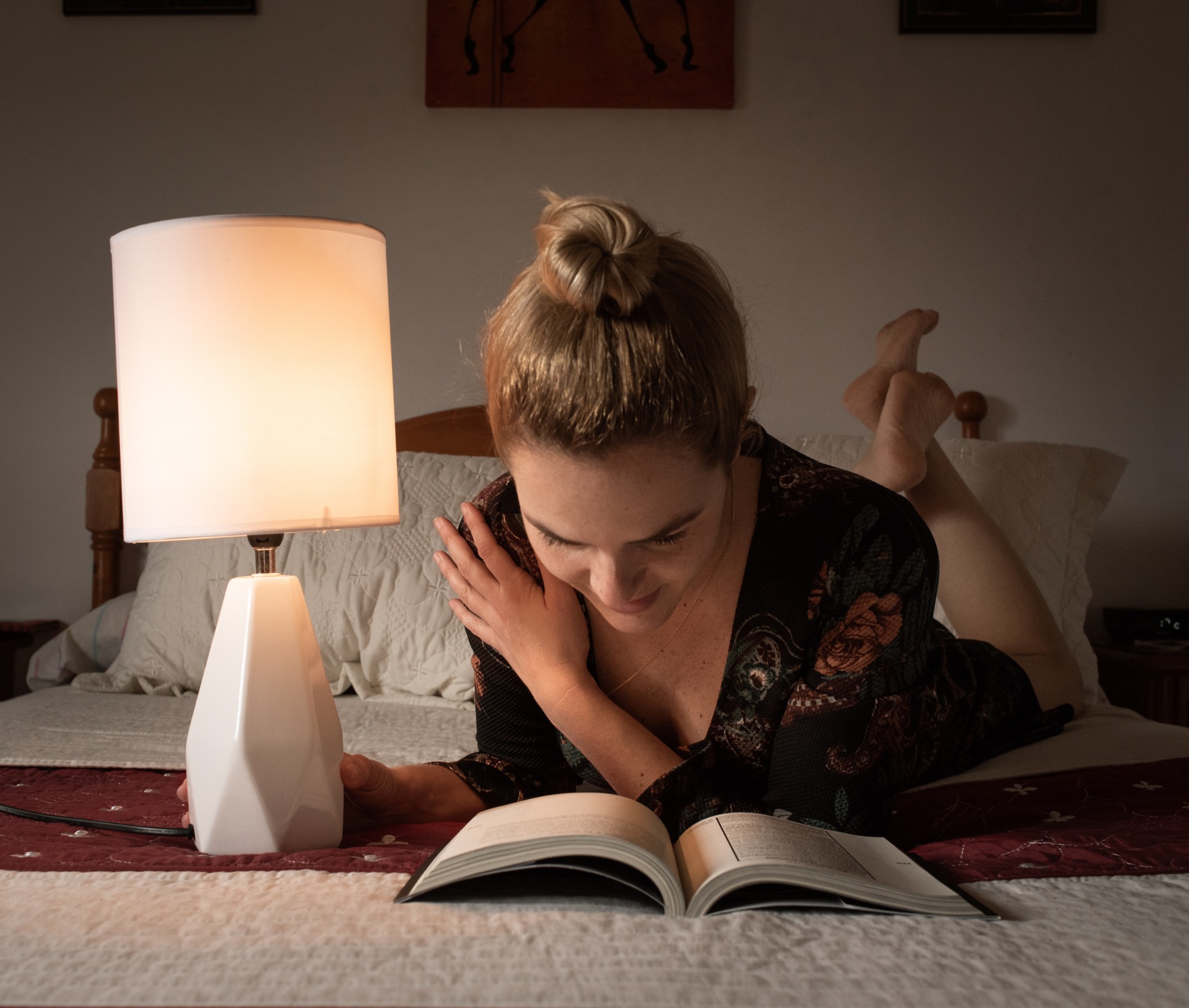 Dicen que hacen falta 21 días para adquirir una nueva rutina, pues bien, mi rutina estrella en estos días de introspección es esta, escribir mi blog. Pues comencé el día anterior al estado de alarma en nuestro país, y hoy, 2 de Abril de 2020, ya son 21 las publicaciones acumuladas. Ahora puedo considerar esta actividad ya parte de mi cotidianidad, es un momento del día que ya he asimilado cómo un rato para reflexionar, sentirme y expresar aquello que considero relevante de la forma en que sé hacerlo, a través de la fotografía y la escritura. Esa fotografía que muestro a la izquierda es otra tarea diaria que ya es inherente a mí. En realidad son dos, el leer y el autorretratarme, pues a falta de poder prestar mis servicios como fotógrafa en el exterior en estos días y crear imágenes para los demás, ahora necesito suplir esa necesidad fotografiando mi rutina, para dejar constancia y seguir entrenando mi forma de mirar a través de la lente de mi cámara. Este ratito de escritura está suponiendo para mí un gran desafío, pues cada día he de sentarme a redactar dándole forma a una idea de forma clara y lo más aceptable posible, pero sin perder la espontaneidad y la honestidad. Pero, además, me supone un aprendizaje, un detenerme para pensar cómo voy a expresar aquello que quiero contaros, una reflexión que me conduce a nuevas cuestiones y me permite divagar e interrogarme. No puedo dejar de mencionar, que saber que ya hay una serie de personas que esperan cada tarde lo que les tengo que contar me compromete aún más, pues provoca en mí un sentido de la responsabilidad de querer hacerlo cada vez mejor, pues no me agradaría que dejaseis de seguirme por aburrimiento. Cada post está pensado para vosotr@s, sobre todo eso, para daros una visión diferente y, a ser posible, reconfortante de este tiempo de inquietudes e incertidumbres. A la vez, me trabajo a mí misma, este acto tan banal (o que lo parece) me supone una manera de fortalecerme, de quererme y de rehacerme y, sobre todo, de entenderme. Deseo transmitiros un ápice de mi energía, de mis buenos deseos y de este aprendizaje constante y madurado en el día a día. Sólo soy una mujer que necesita contar cosas, y que precisa hacerlo de la forma más correcta que puede y que sabe. La fotografía me invita a contar a través de la mirada, de mi particular manera de mirar y entender el mundo desde un visor y un encuadre en el que componer para decir aquello que quiero. La escritura me facilita el expresar con palabras aquello que no sé contar de forma oral o para describir de manera más concreta y detallista un sentimiento o una idea que me ronda la mente. Hay tantas maneras de decir las cosas, sólo hay que prestar atención a aquello que te resulta más sencillo, cuando tienes algo dentro que te perturba, te inquieta o te fascina, y quieres deshacerte de ello o mostrarlo a los demás. Ninguna es mejor ni peor, sólo son formas de decir lo que piensas. Esta noche parece que me estoy excediendo, sólo agradeceros el permitirme esta bendita rutina que me llena tanto y me hace tan tan feliz, espero que haya muchos 21 días más y que sean tan especiales como este. Porque tenedlo claro, a pesar de correr tiempos apesadumbrados y complicados, es fundamental encontrar ese ratito para la calma, la sonrisa interior, la esperanza y el mensaje positivo. Os deseo mucha paz y muchos ratitos de sonrisas interiores. Hasta mañana.